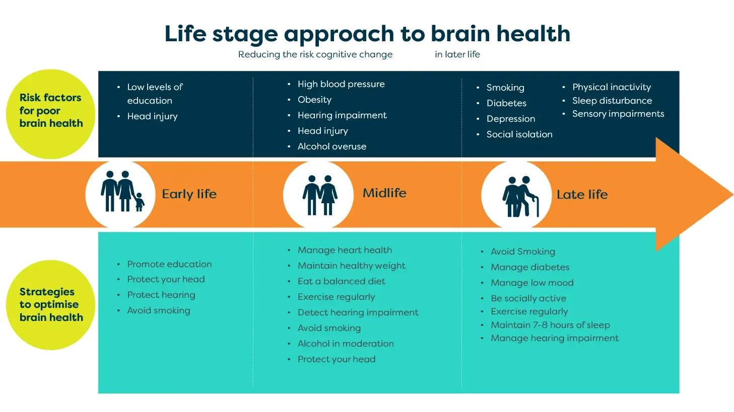 We now know that adopting a brain-healthy lifestyle is beneficial at every stage of life. This is what we call a life-stage approach to risk reduction.